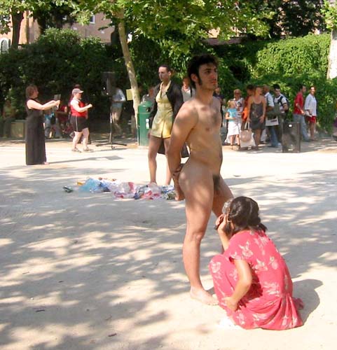 Artnet has some good images from the Venice Biennale. The photograph above, of artists in the gardini, helps to explain the seductive appeal of this event. Obviously it's not just the venue.