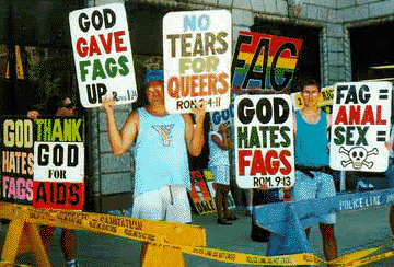 Fred Phelps and his sick entourage will be protesting the fall opening of the school early Monday morning. The people organizing the protest are the same ones who protested at Matthew Shepard's funeral. Fortunately, their website is down, although that means I miss out on linking to it here in order to give just a hint of the malevolence of this cult. [Our fabulous friend Elizabeth, who first alerted me to their plans, absolutely denies credit for the hackwork.]