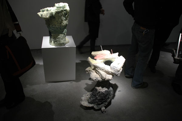 This has to be just a teaser, because of time constraints (we're off to Spain in a few days), but on a beautiful Sunday afternoon Barry and I made the rounds of several Williamsburg galleries, visiting one of them for the very first time (that's so embarrassing).