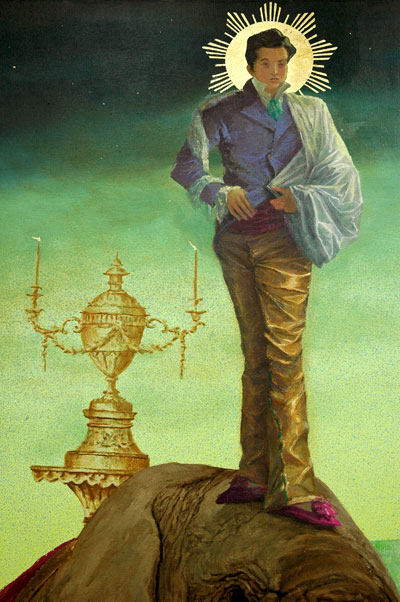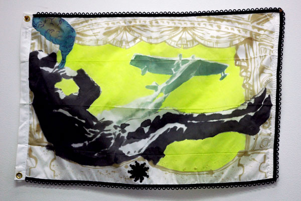 detail of Nikhil Chopra's "Yog Raj Chitrakar visits Lal Chowk" in the Glass Gallery