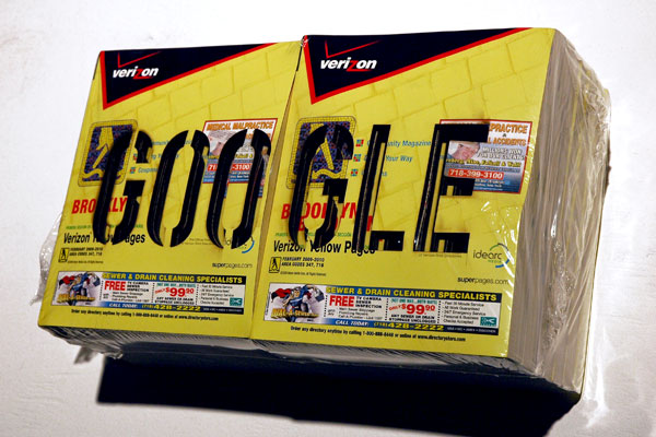 Michael Mandiberg GOOGLE 2009 shrinkwrapped laser cut Brooklyn yellow pages